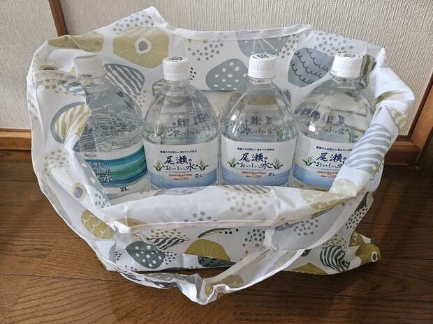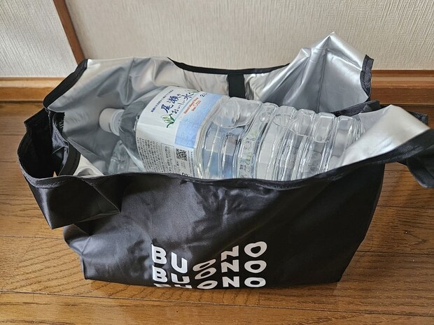 実際に入るであろう水2Lと500mlをバッグの上に置いてみました。