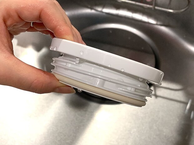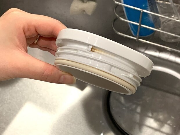 30分経過した冷水筒の蓋を見てみると、茶渋を綺麗に落とせていました!他にも水筒の蓋やパッキンなどまとめて除菌・除臭・漂白可能なので、短時間で清潔感を維持できますよ♪