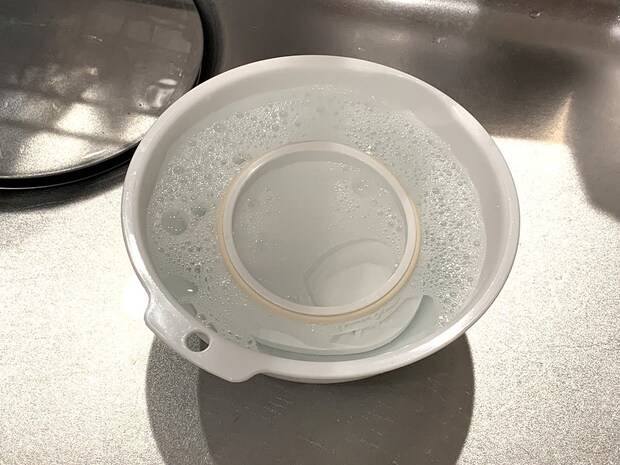 約30分間、冷水筒の蓋を水に浸しておきます。