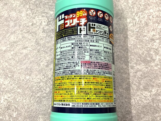 パッケージにも書かれている通り、シリーズ累計売上数800万本を突破した人気商品!今回は600mlのキッチンブリーチを購入しましたが、他に1,500mlの商品も売られていました。