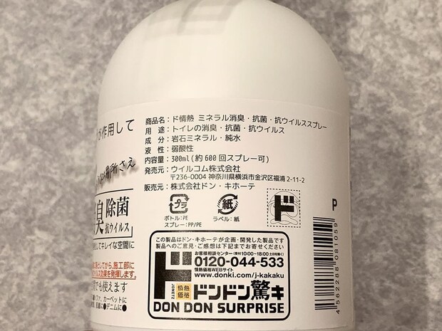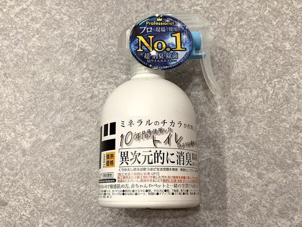 ボトルの側面には“10年間使用したトイレのような場所さえ異次元的に消臭除菌”とキャッチコピーが!”プロの現場で使用No.1”というラベルも貼られており、これは期待が高まりますね!