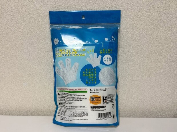 掃除したい箇所を手袋で拭き取ることで、汚れを取り除ける仕組み。10枚入りで価格は438円(税込)となっており、1枚あたり約43円で使用可能です。