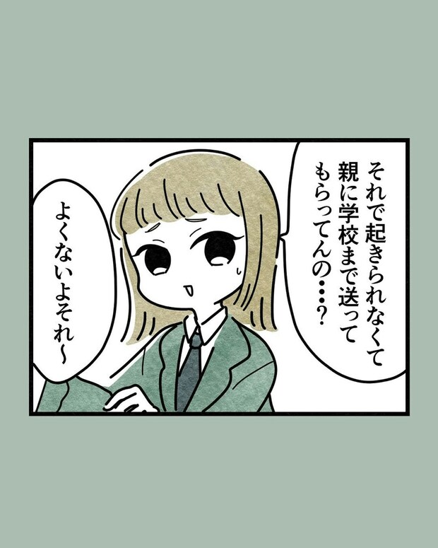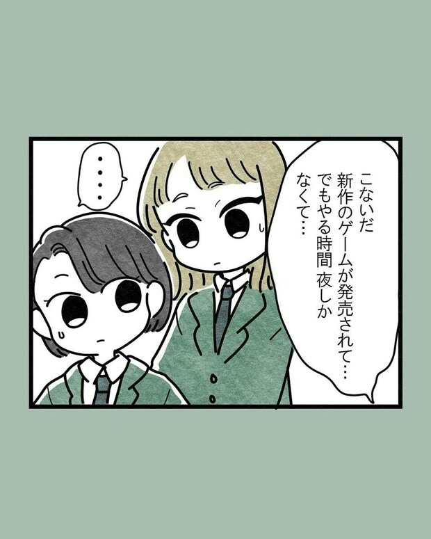 遅刻グセが激しいふうかに、さほはかつて「どうして寝坊するのか」を聞いたことがあったのですね。高校時代は夜更かしをし過ぎてしまうのがふうかの「起きられない理由」だったようです。また、夜更かしの原因はゲームだったようで、さほや他の友人は夜更かしをし過ぎて寝坊し、親に送迎してもらうのは良くないと伝えていました。