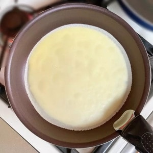 フライパンに油を熱し、クレープ生地を流し入れて焼いていきます。