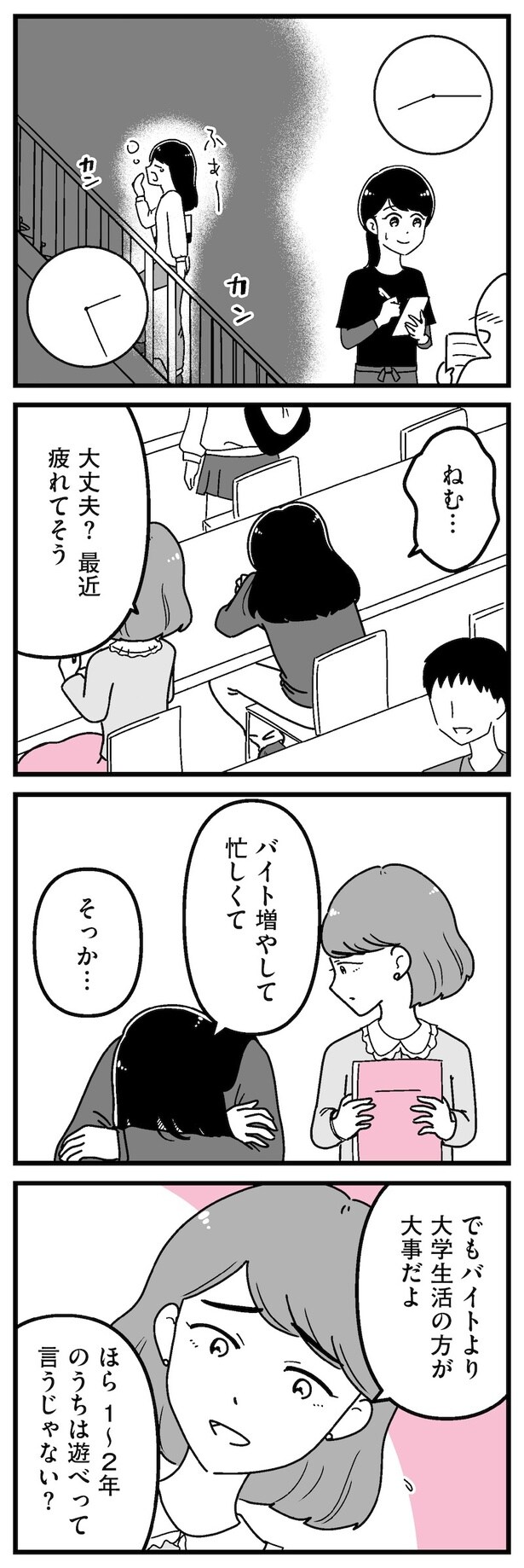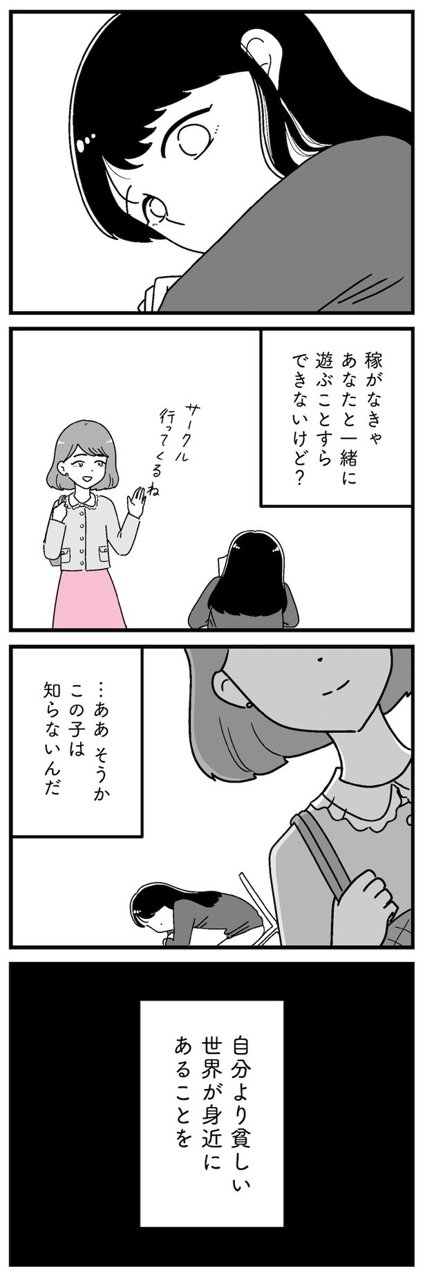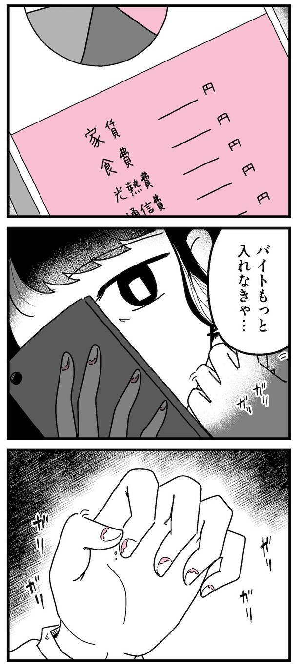 前回、桜子とカフェに行き1人7,000円のアフタヌーンティーに驚きを隠せなかった美春。もっと稼がないと…とバイトを頑張るも疲労が溜まる一方。そんな美春に桜子が声をかけ…。