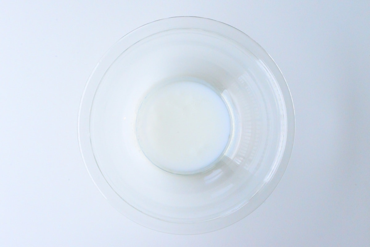 まずボウルに牛乳を入れ、電子レンジで約1分加熱。牛乳が沸騰しないように注意しましょう。