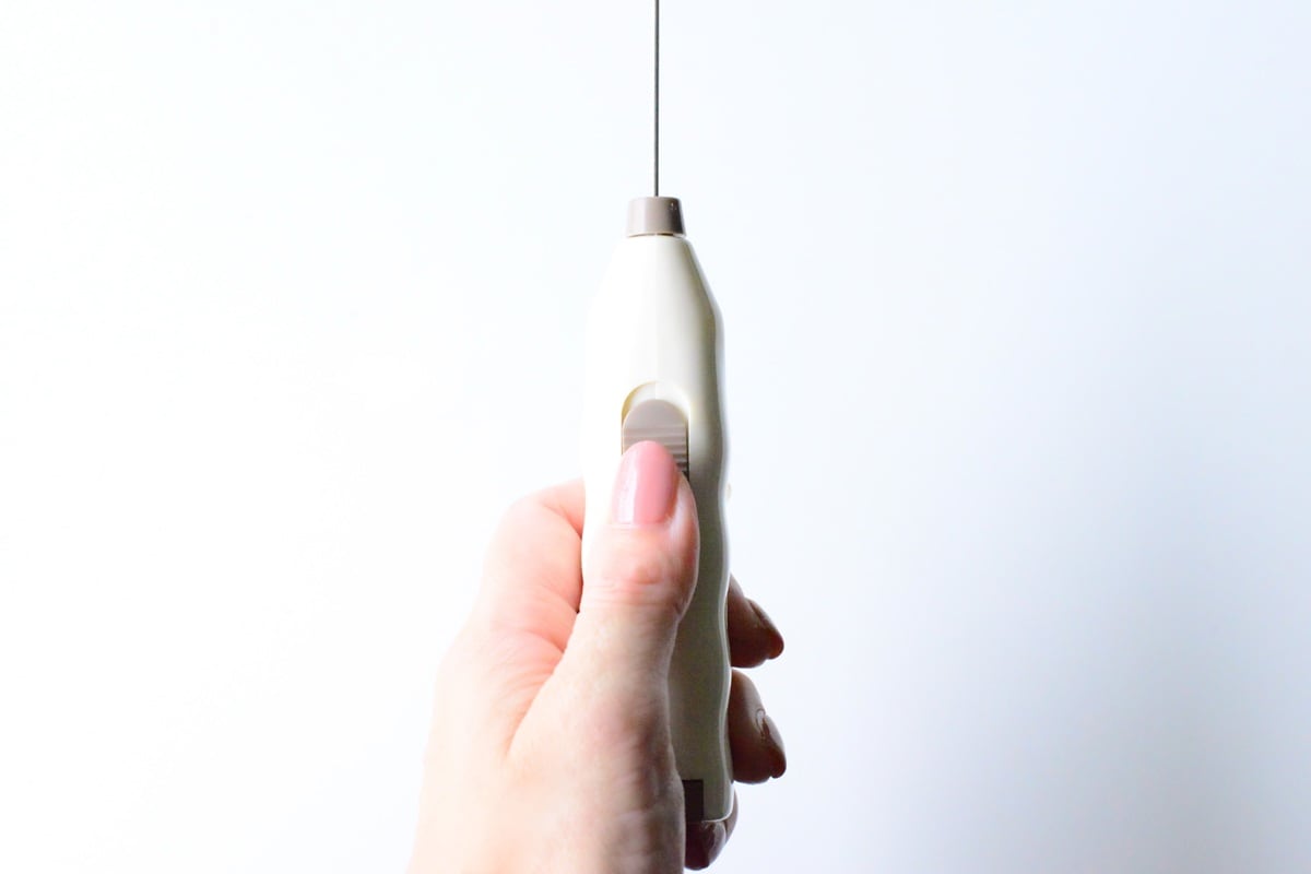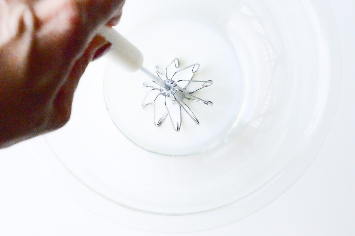 回転リングをしっかりと牛乳に中に入れたままスイッチONにして泡立てていきます。このとき、空気を含ませるように上下にゆっくりと動かすのがポイント。