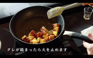 砂糖、はちみつ、酢、みりんでタレを作り、ここにさつまいもを入れて絡ませればできあがり!