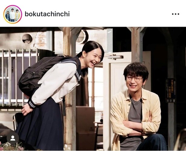 この日、公式Instagramは「撮影の合間、とっても楽しそうな玄一(及川)とほたる(白鳥)。親子契約をした2人の距離に変化が!?」などのコメントとともに写真を投稿。座って腕を組む笑顔の及川と、その隣で満面の笑みを見せる制服姿の白鳥のオフショットを公開した。