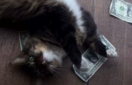そして、そのお金の上でゴロゴロ寝ている猫さん。