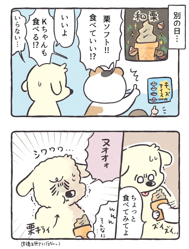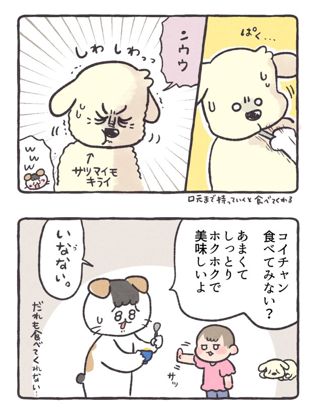 Kちゃん(旦那)にも芋スイーツを買う度に「一口食べてみない?」と渡してみるのですが、たいてい断られます。そりゃあそう。