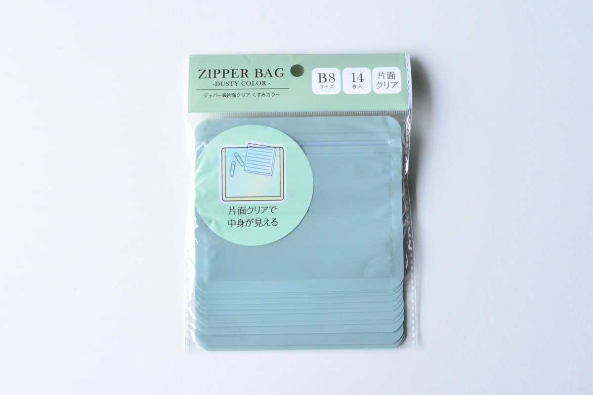セリアの「B8 ジッパー袋 片面クリア 14枚」(税込110円)です。