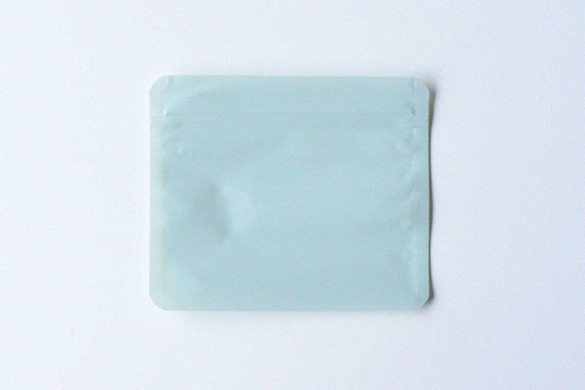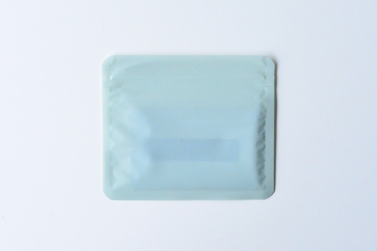 外寸は約9.6cm×11.3cm。くすみグリーンのかわいいカラーリングで、片面は中身が見えるようにクリアになっています。