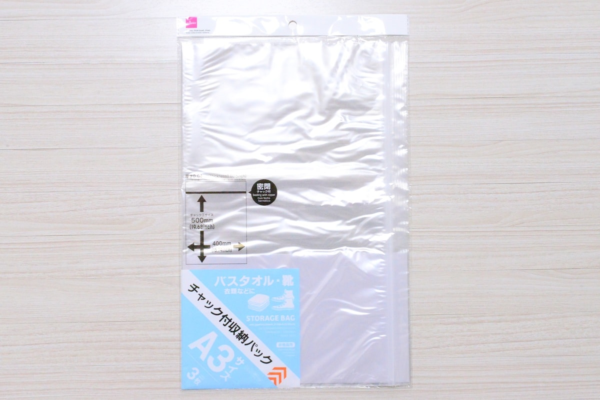 大きいサイズで旅行にも便利な「チャック付き収納バック A3 3枚」