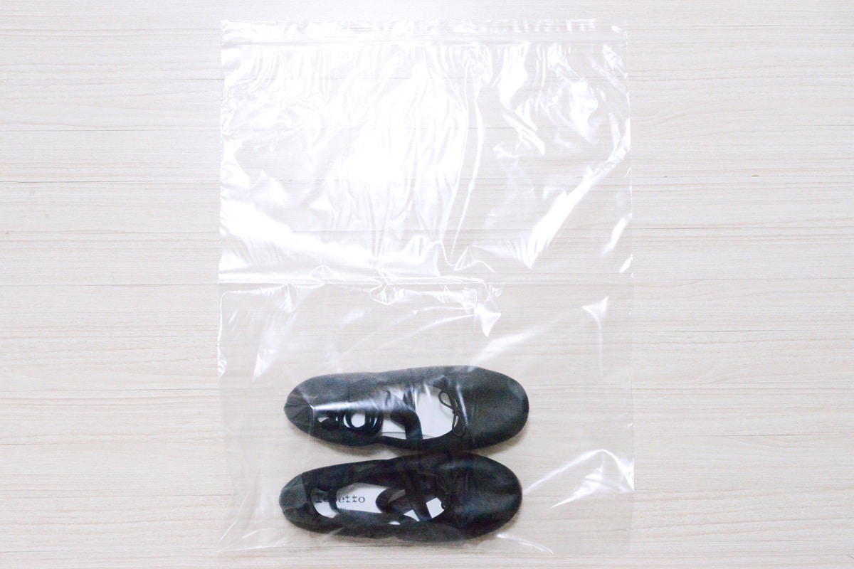 靴を入れてみました。バレエシューズなのでかなり余裕があります。