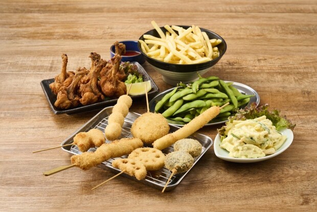 (串カツ牛/串カツ豚/玉ネギ/レンコン/エビ/うずら/紅しょうが/アスパラ)