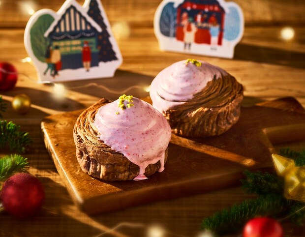 ほんのりカカオが香るデニッシュ生地に、ストロベリー風味のデコレーションを施した。苺のつぶつぶ食感がアクセントになっており、コーヒーとの相性も良いという。