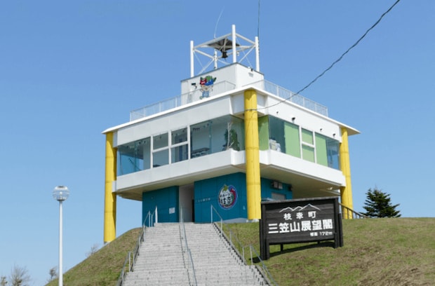 枝幸に来た際に必ず立ち寄ってほしいのが「三笠山展望閣」です。標高172mの三笠山山頂にたたずむ展望閣内の2階にあるカフェラウンジは、360°の大パノラマ。枝幸町の街並みとオホーツク海を眺めながら、ゆっくりとくつろげる空間です。