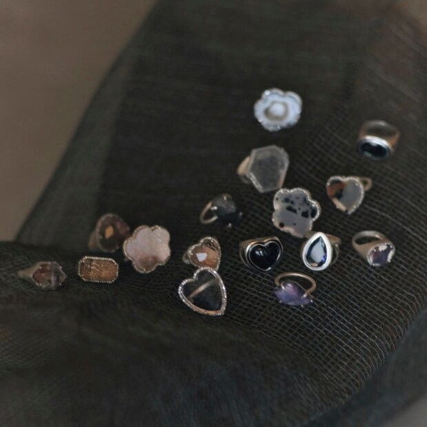 デッドストックの天然石やリサイクルシルバーなどを使用して作られるサステナブルなジュエリーブランド。デザイナー安部真理子氏の独創的なデザインは海を越え海外にも広がる。