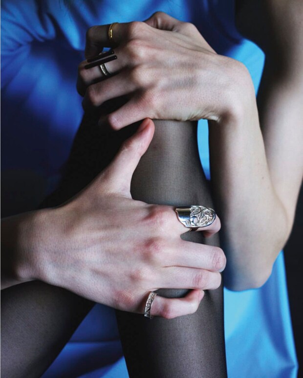 左手人さし指リング¥35,200、左手中指リング¥63,800、右手人さし指リング¥74,800、右手小指リング¥35,200(トーロウ)