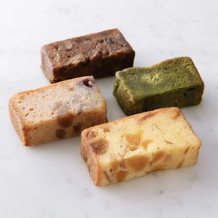 パウンドケーキは濃厚で芳醇、素材の魅力を凝縮した4種の贅沢コレクションで、ポーチに入っている。