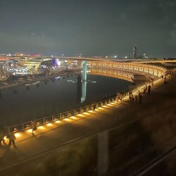 噴水を使った水と空気のスペクタクルショー「アオと夜の虹のパレード」もおすすめ。予約が取れなくても、海側の大屋根リングで裏側から見られる。迫力は落ちるが、予約無しでも見られる貴重なショーだ。