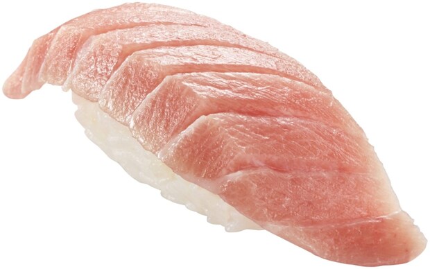 通常のびん長まぐろより大切りで、食べ応えとハラモの脂の旨みが楽しめる。
