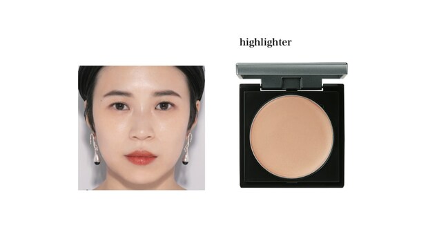 オレンジ系のコンシーラーでクマをカバー後、ハイライトを目の下へ。ミニマムな逆三角形を描くようにすれば、ふっくらハリ感を高めながら、シュッとフェイスラインのもたつきをカバーできる。