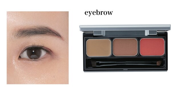 左端のワックスをベースとして、眉全体に。毛の足りない部分には中央のブラウンを。最後に柔らかなブラシで右端のレッドカラーを眉全体に。リップに頼れない今、この赤みが血色をプラス。