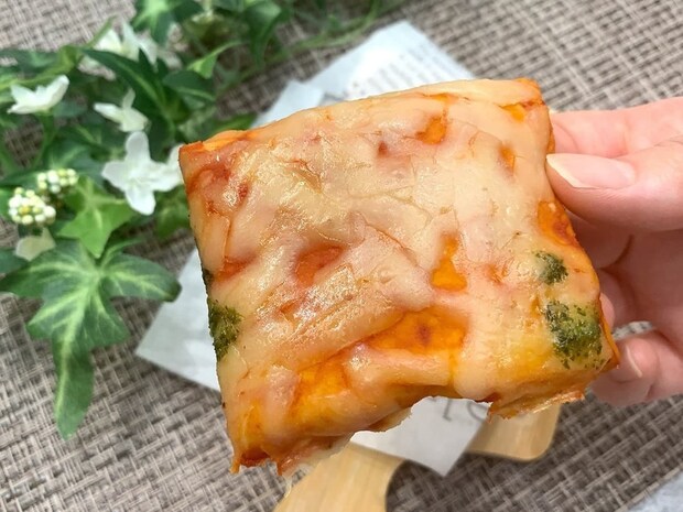 味わいは、通常のピザに比べると全体的にややマイルドですが、それでもバジル、チーズ、トマトの風味はしっかりと感じられ、「ピザを食べたい」という欲求を十分に満たしてくれます。