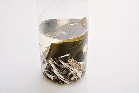 POINT2:清潔な密閉容器に煮干しと昆布、水を入れ冷蔵庫でひと晩置くだけで上品な出汁が出るのでオススメ。傷みやすいので1~2日で使い切りましょう。