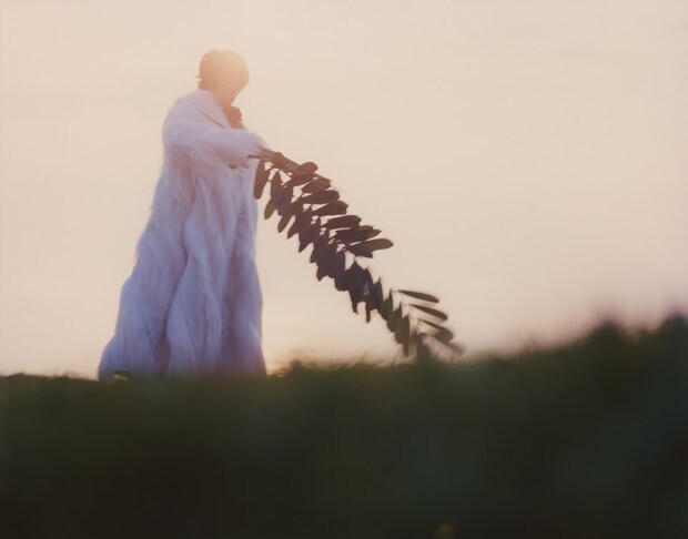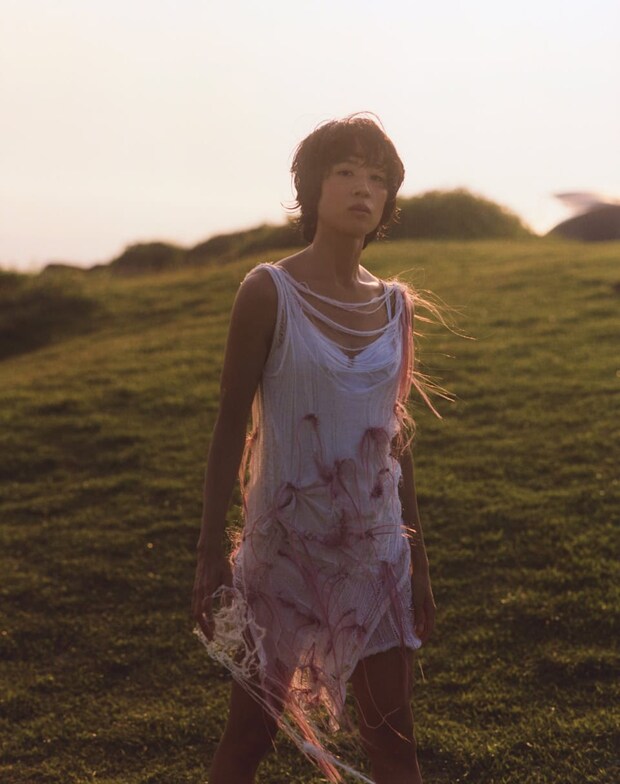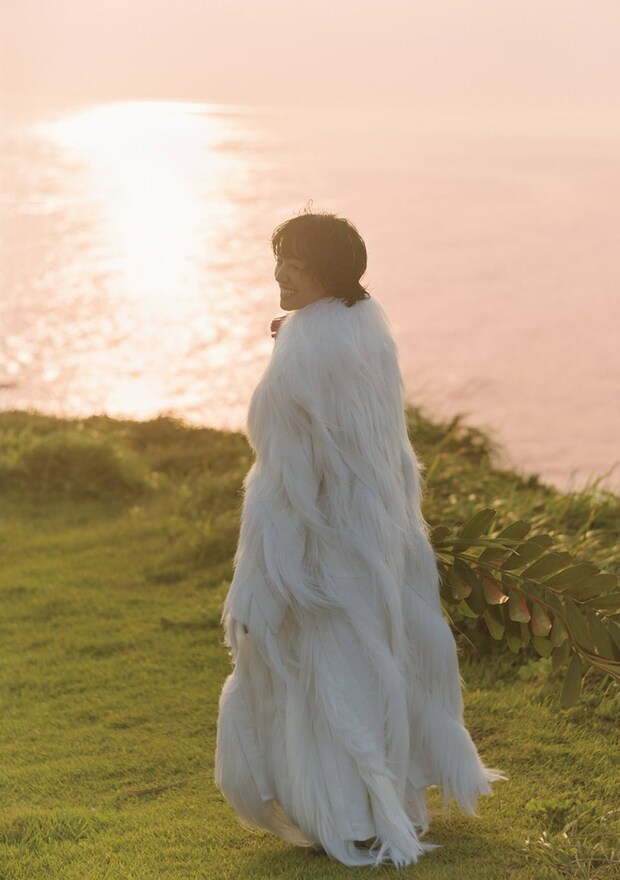 撮影前、何度も構想を膨らませていたUDAさん。今回のフォトグラファーの熊谷勇樹さんに相談したところ、静河さん自身の持つしなやかさと無垢な部分を際立たせるには、夕暮れのような柔らかな光が必要、となった。