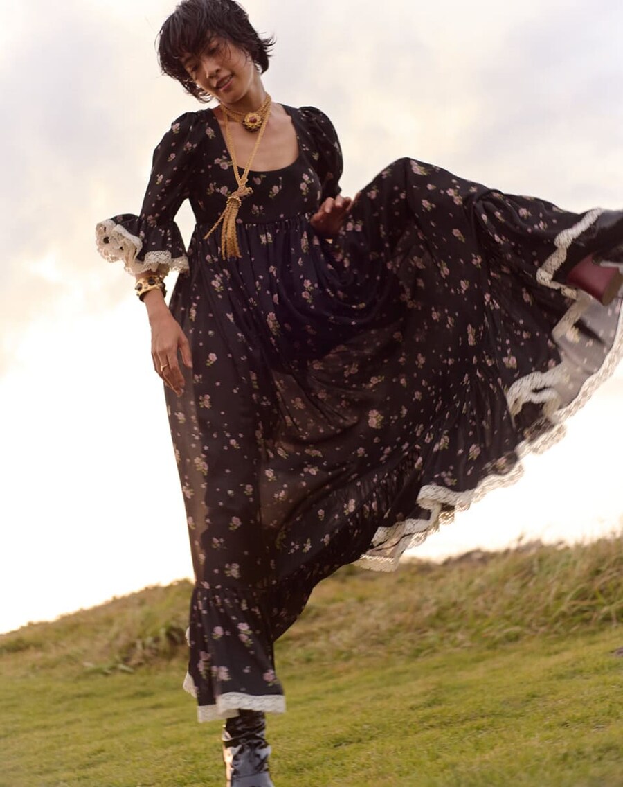 ドレス¥613,800、チョーカー¥202,400、ネックレス¥262,900、バングル¥138,600※参考価格、リング¥50,600、ブーツ¥264,000(全てクロエ/クロエ カスタマーリレーションズ)