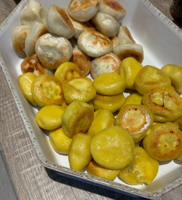 そしてディナーメニューはみんな大好き肉汁餃子の【餃包】! 小籠包のようにジューシーでボリュームのある餃子は子どもにも大人にも大人気。今回はいつもの餃子に加え、ハロウィンっぽさがあるラビオリ餃子をご提供いただきました。餃包をいただいた回は、スタッフの作業は焼くだけ! 料理の手間も省けて大助かりなんです♡