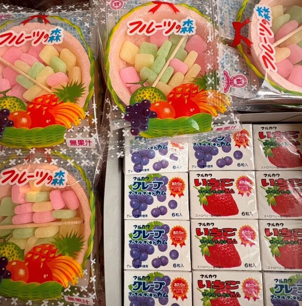 ランチの後には、れいちゃんからいただいたお菓子のプレゼントをみんな開けて……。当たり付きふーせんガムでひと盛り上がり❣️ 当たった子は受付にてお菓子と交換しました。ミャクミャクのお煎餅も嬉しかった〜!