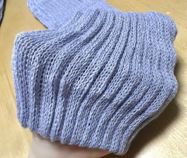 表裏を比べると、編み目の細かさが大きく違うのがわかります。