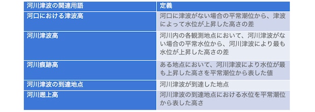 なお、河川津波という言葉は国の正式な用語として一般的に使われているわけではありませんが、国土交通省ではこの用語を定義の中で使用しています。