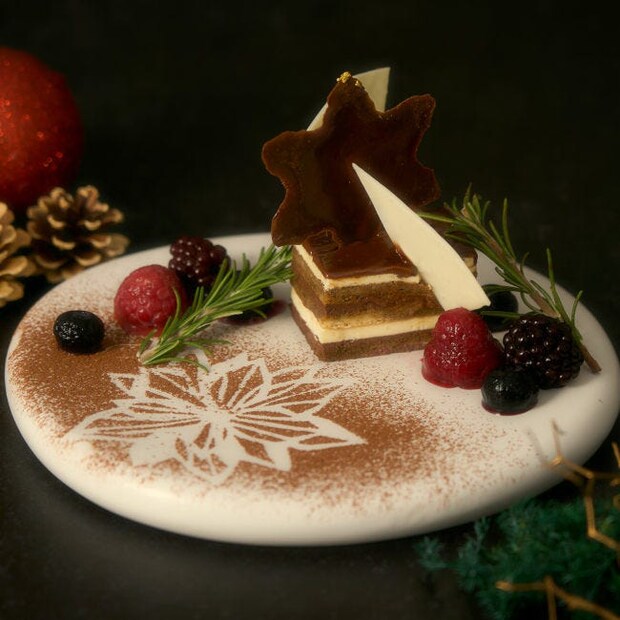 スペシャルデザートには、9層仕立ての特別なチョコレートオペラを用意。