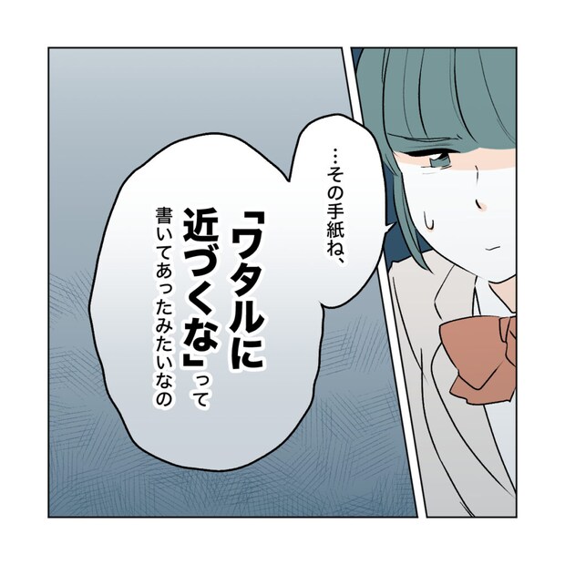 私は、カエデに届く手紙のことを「その手紙ね、『ワタルに近づくな』って書いてあったみたいなの。」とワタルに密告しました。