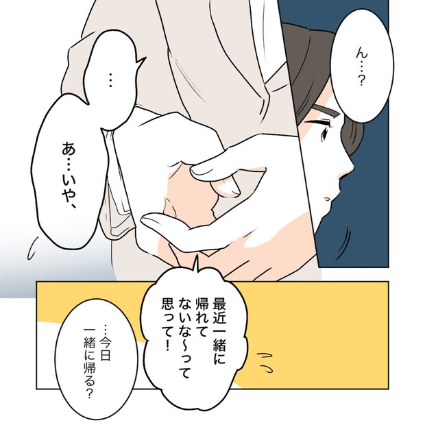 真面目な性格のワタルは、『カエデは誰にも知られたくない』という私の言葉を信じて自分からは何も言いません。「ん・・・?」とワタルに言われたカエデは、「あ、いや、」と話そうか悩んでから「最近一緒に変えれてないな~って思って!」と、やはり言うのをやめた様子です。「今日一緒に帰る?」とワタル。この前私が誘った時は「部室に寄って帰るから」と断られたのに。