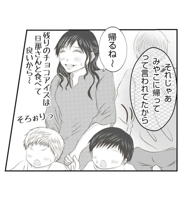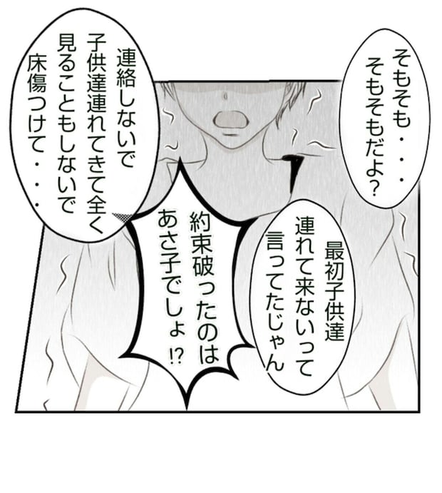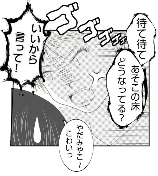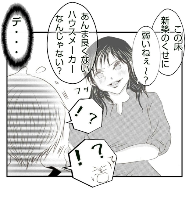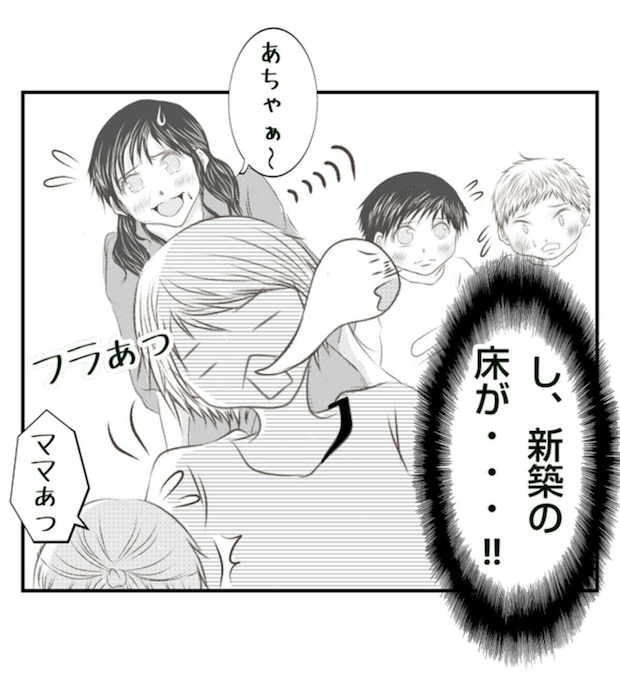 夫に預けてくると言っていたのにも関わらず、当日子どもたちを連れてみやこの新築の家を訪れたあさ子。それだけでもみやこには想定外でしたが、子どもたちがケンカを始めてしまいそのはずみでスピーカーを床に落としてしまいます。幸いにもケガはなかったものの、新築の床はえぐれてしまい、みやこは相当なショックを受けます。