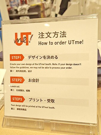 「UTme!」コーナーは、ユニクロ浅草店2階に設置されている。操作手順は以下の通りだ。