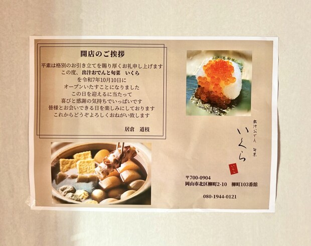 柳町に「旬菜とおでん いくら」さんというお店を見つけました。