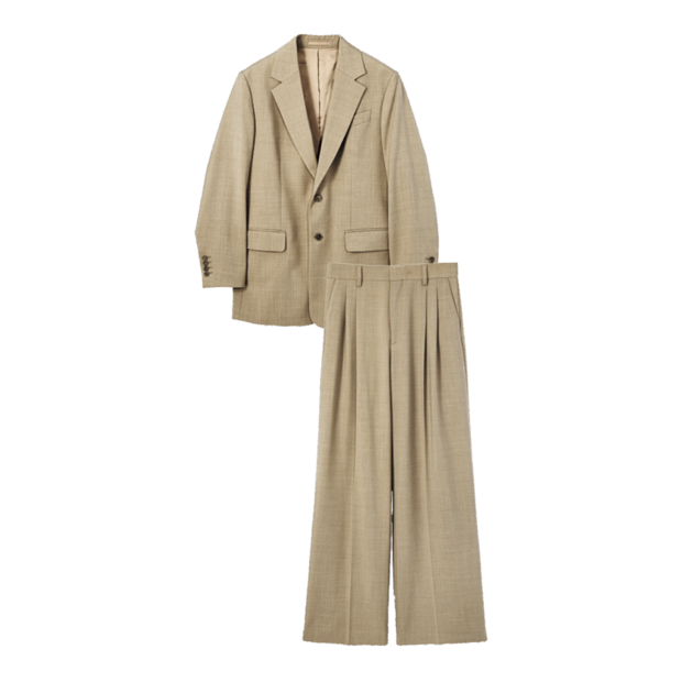 「計算し尽くされた程よくボクシーでモダンなシングルブレストのジャケットと美脚見えパンツが魅力。肌を明るくキレイに見せてくれるベージュの色合いも気に入っています」