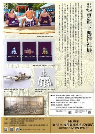 会場では、10月9日(木)に第74代横綱・豊昇龍関による奉納土俵入りで実際に用いられた、下鴨神社所蔵の鸞鳥・獅子・狛犬意匠による特別化粧廻しや関連資料を、名古屋で特別公開。江戸初期に糺河原で興行された勧進相撲は「京都相撲の始まり」と伝えられており、下鴨神社における相撲文化の淵源と、現代の奉納がつながる“瞬間の記憶”を見ることができる。