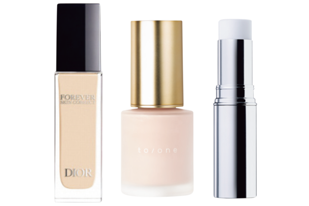 左から:ディオールスキン フォーエヴァー スキン コレクト コンシーラー 1N (本人私物)、ベース ルミネッセンス SPF22・PA++ 30mL ¥3,520(トーン)、ザ・タイムR デイエッセンススティックe 9.2g ¥3,190(イプサ)
