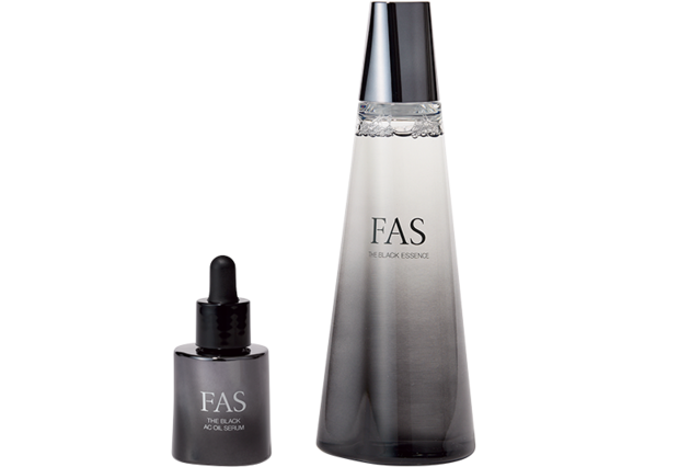 左から:FAS ザ ブラック エーシーオイルセラム 30mL ¥12,100、同 エッセンス 200mL ¥11,550(共にシロク)
