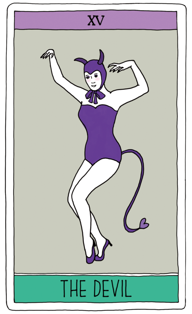 こちらは「悪魔」のカードですが、タロットって悪魔が出たからって必ずしもガッカリしなくていいことを表現するかのように、おちゃらけております。これがオトナミューズスタイル。