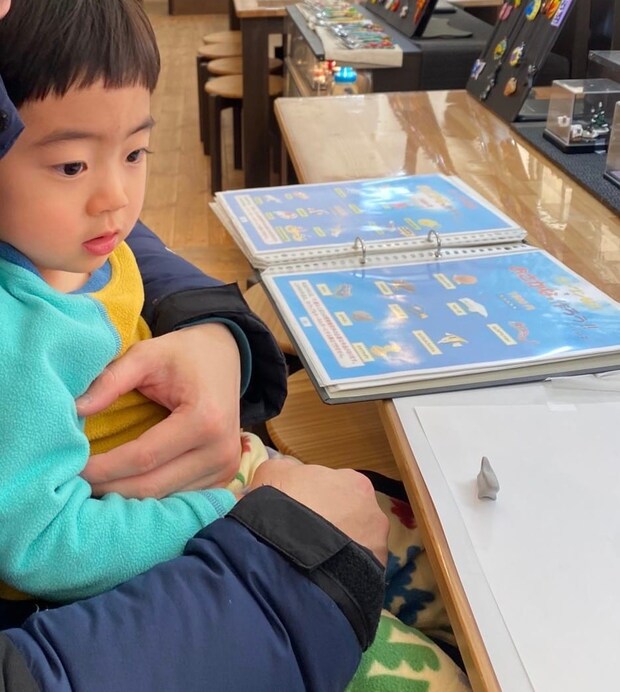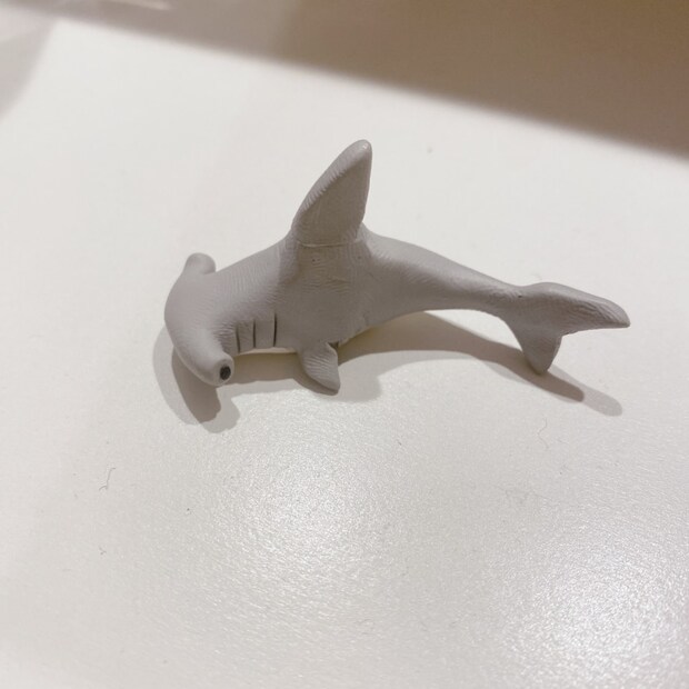 3歳児には難易度が高かったシュモクザメ(もっと簡単そうなのもありました!)。ほとんど父ちゃんが作りましたが(笑)、息子は大切にしています。大切にし過ぎて、背びれが折れてしまい、接着剤でくっつけました。思い出~。