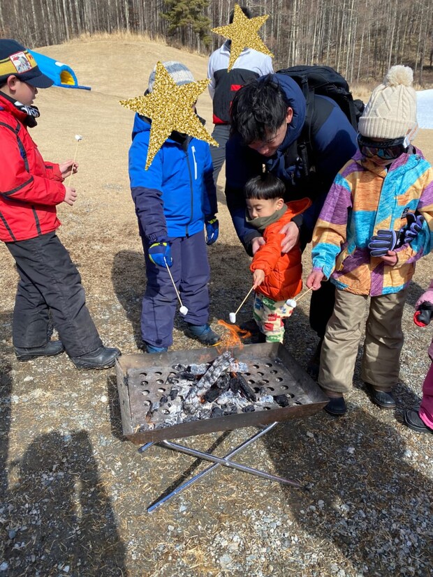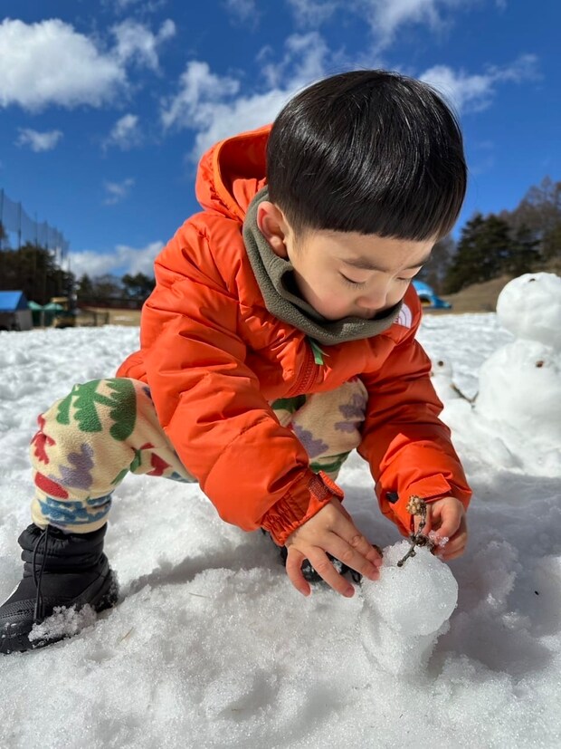 気を取り直し、シャトルバスに乗り込み、15分ほどで冨士見高原スキー場へ到着。お目当てのキッズパークへ直行し、ソリ遊びに挑戦! 楽しかったようです(ほっ)。親というものは何なんでしょうね。せっかく雪山に来たからには、子どもにも雪遊びを楽しんでほしいとどうしても思ってしまう。子どもが行きたいと言ったわけでもなく、勝手に連れてきただけなのになんとも勝手な生き物です! 雪は予想通り全然なかったのですが、キッズパークでは他にも雪だるまを作ったり、トランポリンをしたり、マシュマロを焼いたり、アルパカにエサをあげたりして楽しみました。その後、ラーメンを食べて、2時間ほどの滞在で終了。これがスノーデビューというのかどうかはわかりませんが、いったん初めての雪山は体験できましたとさ。